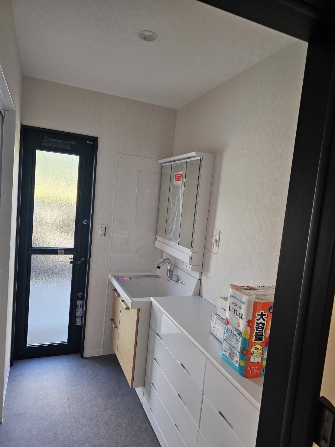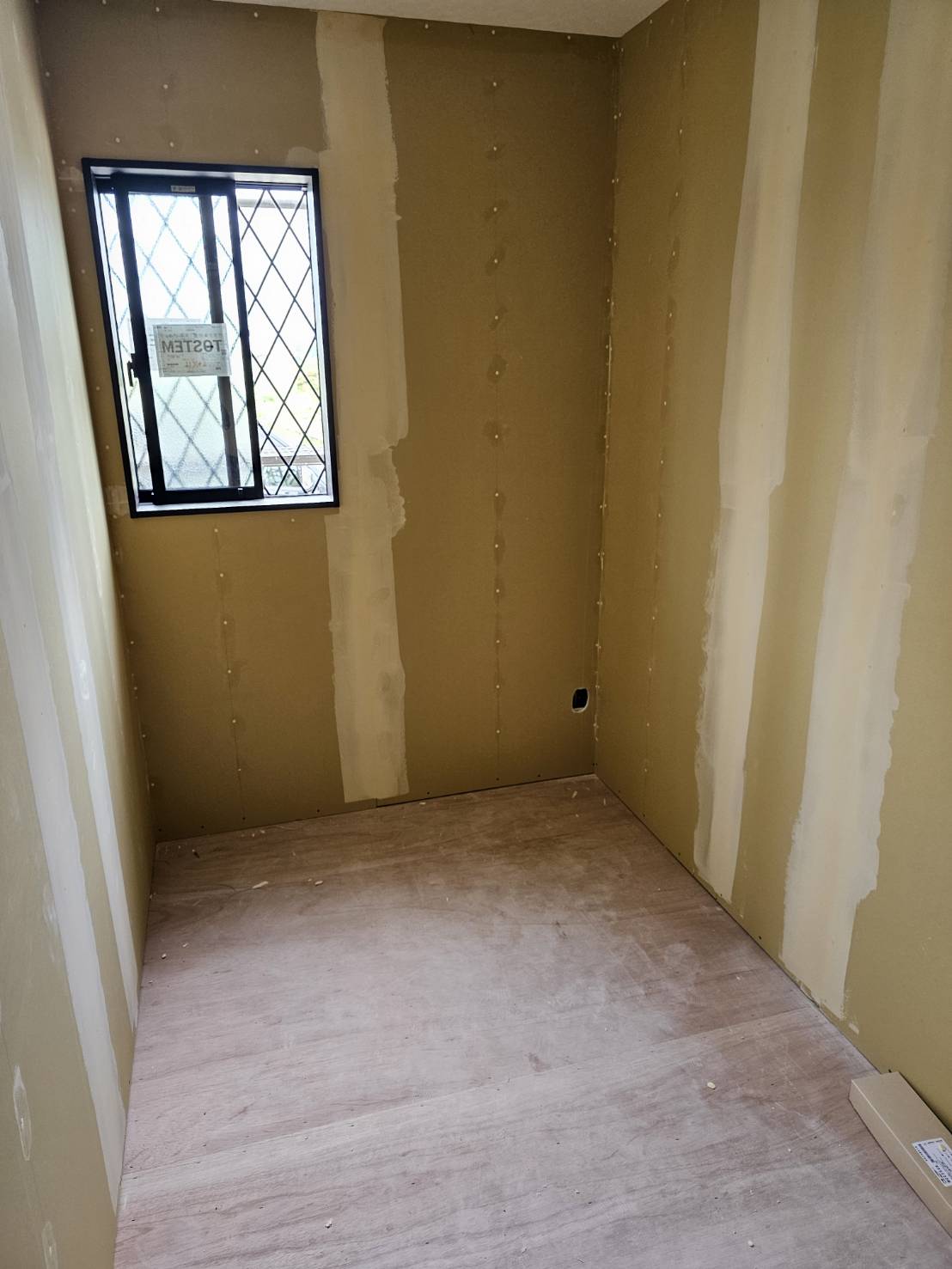 クロスや床材を貼る前の段階で、下地のパテ処理や寸法確認を丁寧に行いました。