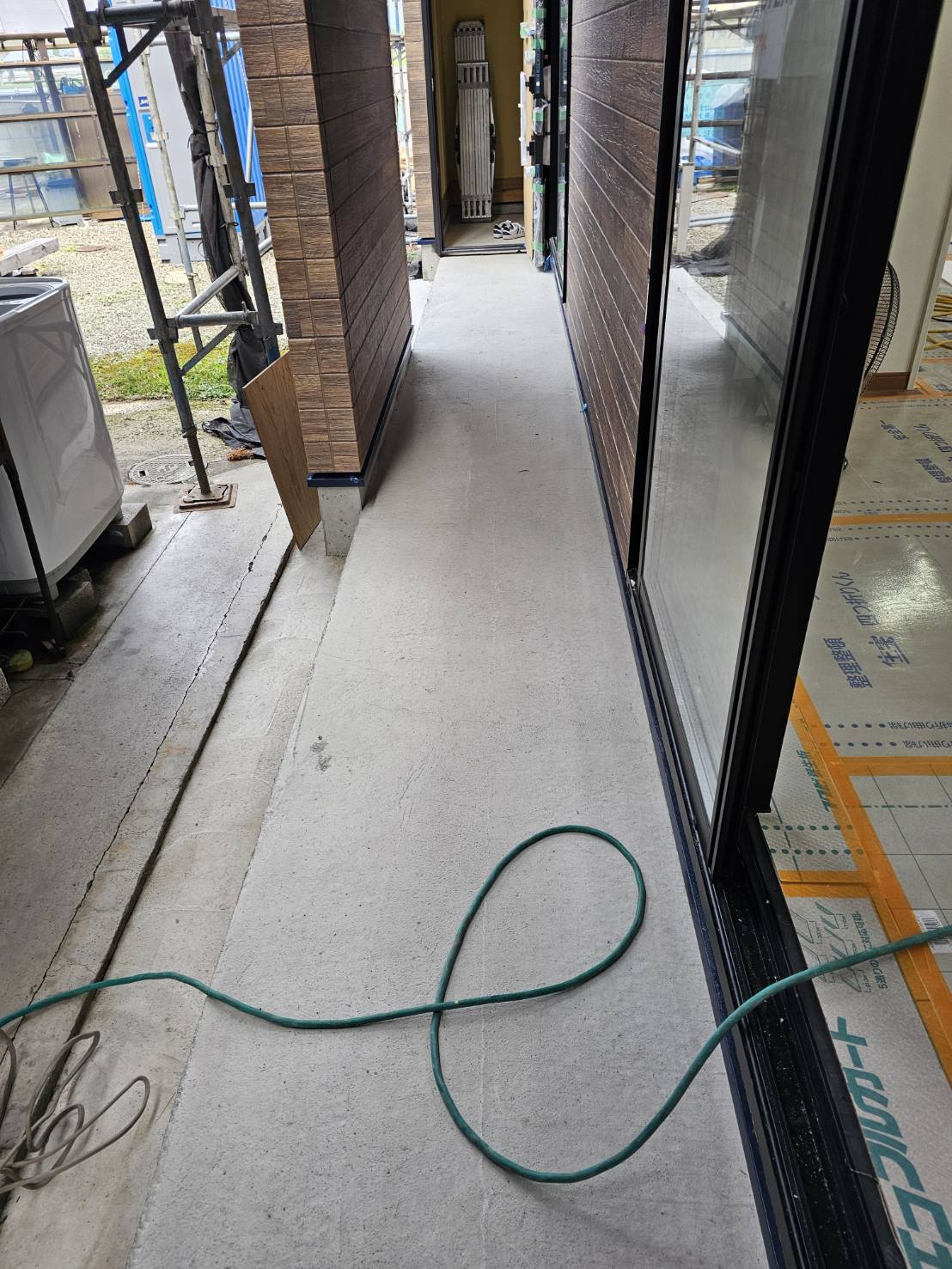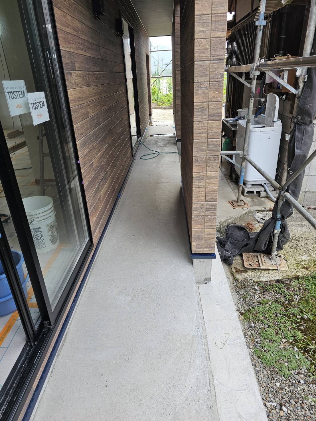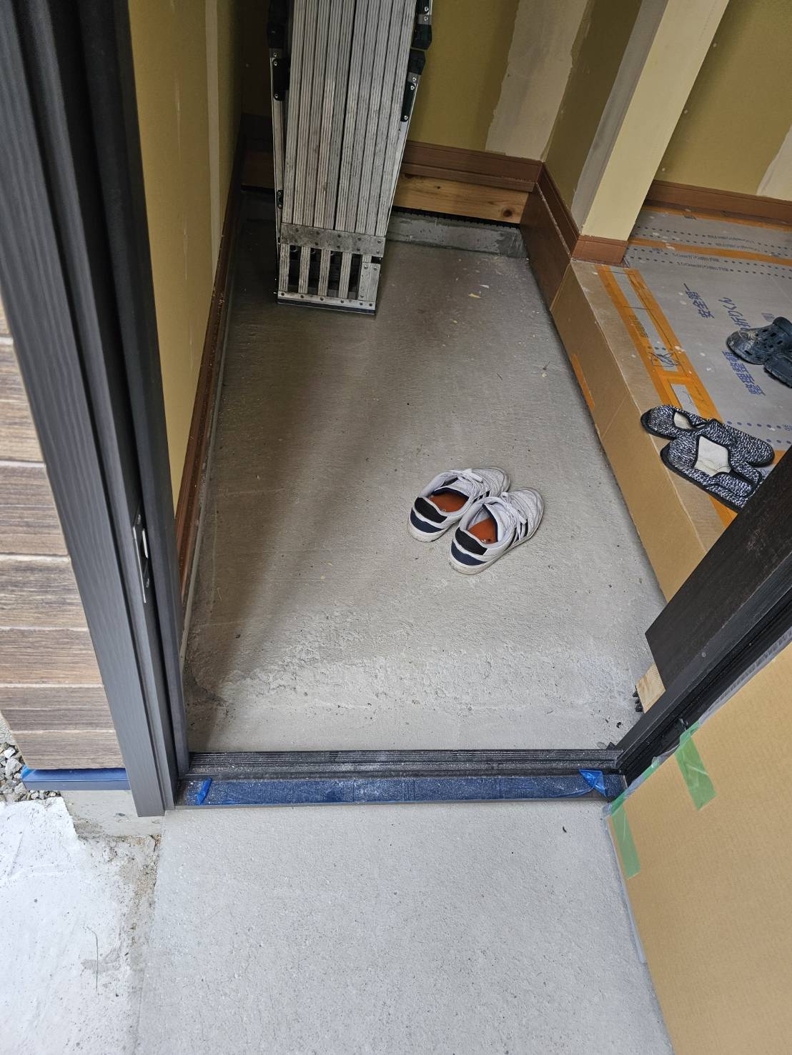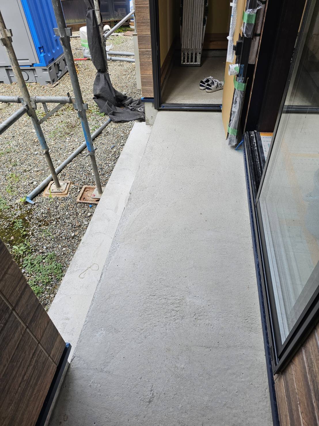 また、外部スロープや玄関まわりもコンクリートのままでしたが、ここから滑りにくく安全な仕上げ材を施工していきます。