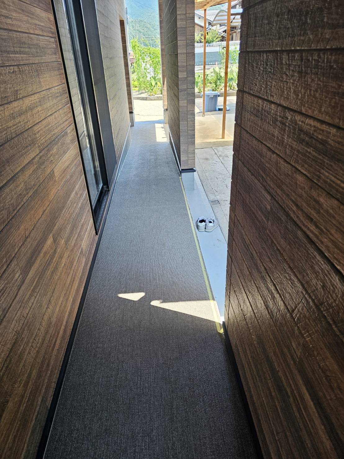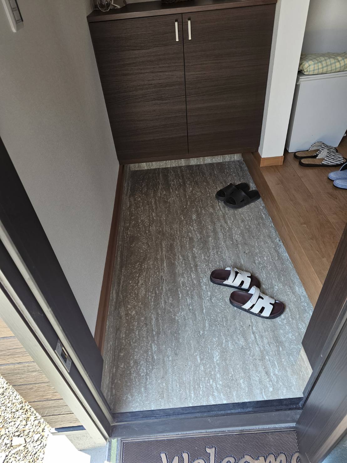 玄関土間と外部スロープにはノンスキッドシートを貼り、滑りにくく安全に出入りできるようになりました。